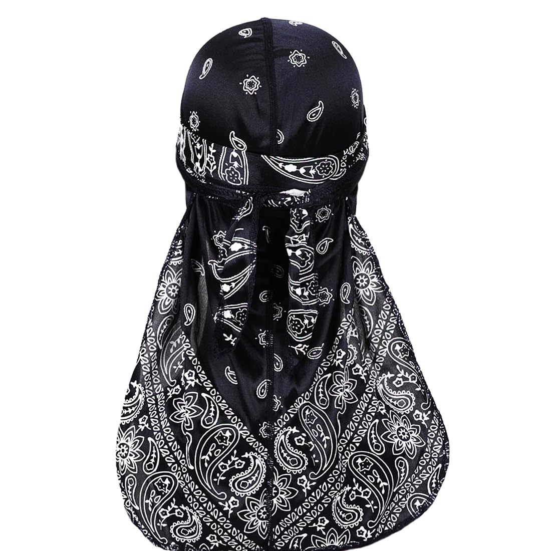 [Trifong] ドゥーラグ 黒 ペイズリー柄 durag 光沢の生地 du-rag 海賊 バンダナ ヒップポップ ダンス ウェーブ キャップ デューラグ hiphop衣装 ダンス衣装 ラッパー ブレイクダンス ダンサー バンダナキャップ 頭髪 頭皮 保護 通気性 ブラック