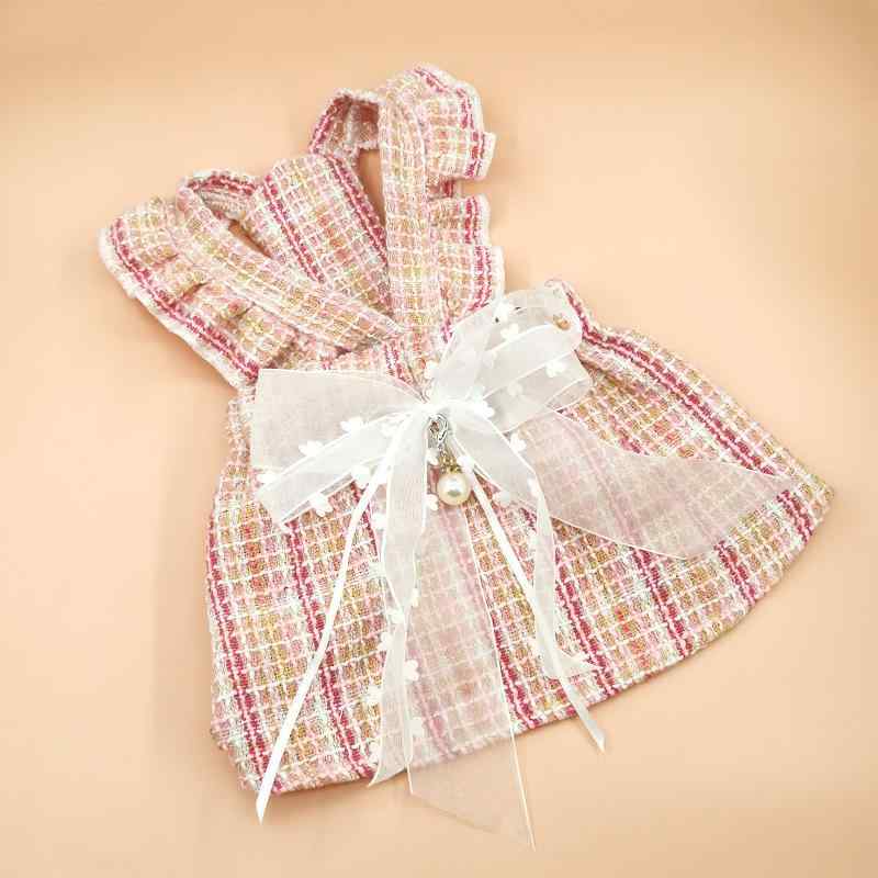 ペットウェア 小型犬 中型犬 猫服 秋冬 暖かい お出かけ フォーマル エレガント 上品 サロペットスカート シャツ 2点セット ピンク ポリエステル コットン(x2)