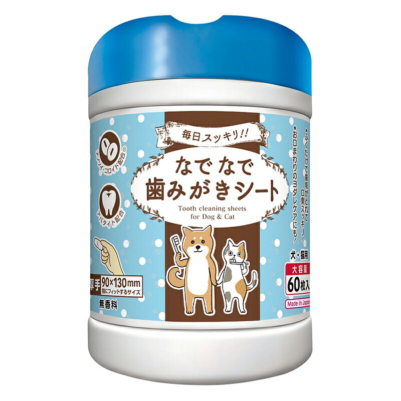 なでなで 歯みがきシート 60枚入 本田洋行 ▼a ペット グッズ 犬 ドッグ 猫 キャット デンタルケア 厚手 無香料 ナノソイコロイド アパタイト 国産