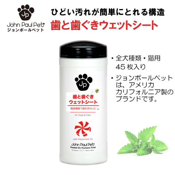 【ジョンポールペット】 正規品 歯と歯ぐきウェットシート 45枚入り 犬 いぬ 猫 ねこ イヌ ネコ ペット用 ペット用品 ケア用品 ケア 清潔 シート ウェットティッシュ 歯 歯ぐき 歯磨き デンタル 歯周病 予防 お手入れ