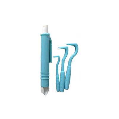 ダニ 取り 4本 セット 【 フック 3本 + ノック式 ピンセット 1本 】スカイブルー ケース入り マダニリムーバー ダニ除去 ティックツイストフックリムーバー【定形外郵便のみ送料無料】何回でも使用可能 犬、猫等ペットの散歩、アウトドアの救急セットに