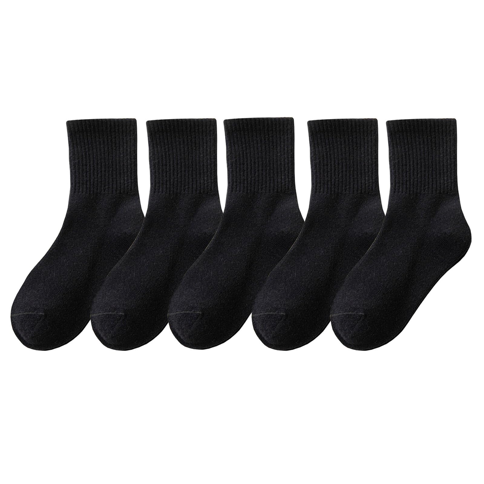 【送料無料】[konamiya] 靴下 キッズ 学校指定 スクールソックス 白 5足セット 男の子 女の子 クルー丈ソックス 白 子供用 小学生 くつした 保育園 幼稚園 小学生 通園 通学 色:ブラック、サイズ:M