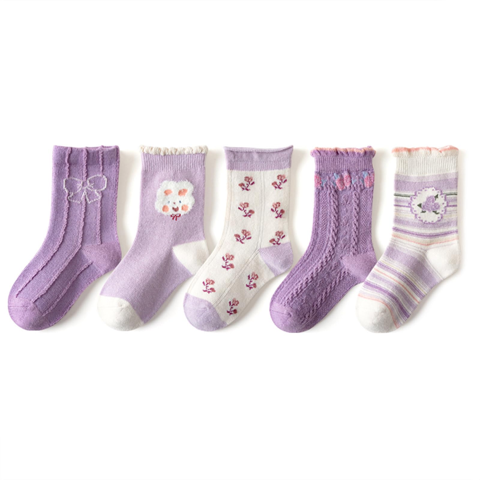 【送料無料】[konamiya] 靴下 キッズ 可愛い 女の子 靴下 子供 ガールズ 5足セット カラフルソックス くつした スクールソックス 幼稚園 小学生 通園 通学 色:Aタイプ、サイズ:XL