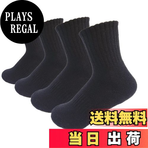 【送料無料】[ZGKULAEAOW] 4足 キッズ スクールソックス 足底パイル 子供 靴下 クルー丈 冬 秋 厚手 無地 あった 中学生 高校生 小学生 ジュニア 土踏まずサポート 色:ブラック、サイズ:22.0-24.0 cm