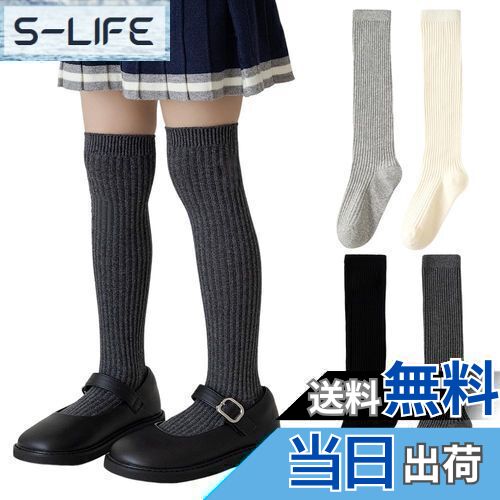 【送料無料】[ZGKULAEAOW] ニーハイソックス キッズ リブ ハイソックス 靴下 女の子 ニーハイ 膝上 ジュニア 子供 無地 ワンポイント刺繍 2足セット 色:無地&黒+オフホワイト、サイズ:18.0-22.0 cm