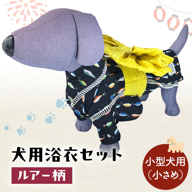 【ふるさと納税】ペット用品 犬用浴衣セット 小型犬(小さめ)男の子用 ルアー柄 犬の服 浴衣 甚平 綿素材 夏用 ペット ドッグウェア 可愛い おしゃれ お散歩 お出かけ インスタ映え
