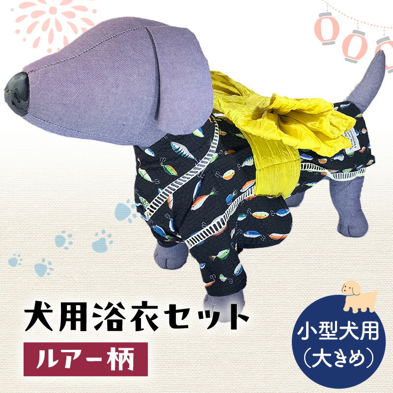 【ふるさと納税】ペット用品 犬用浴衣セット 小型犬(大き目)男の子用 ルアー柄 犬の服 浴衣 甚平 綿素材 夏用 ペット ドッグウェア 可愛い おしゃれ お散歩 お出かけ インスタ映え