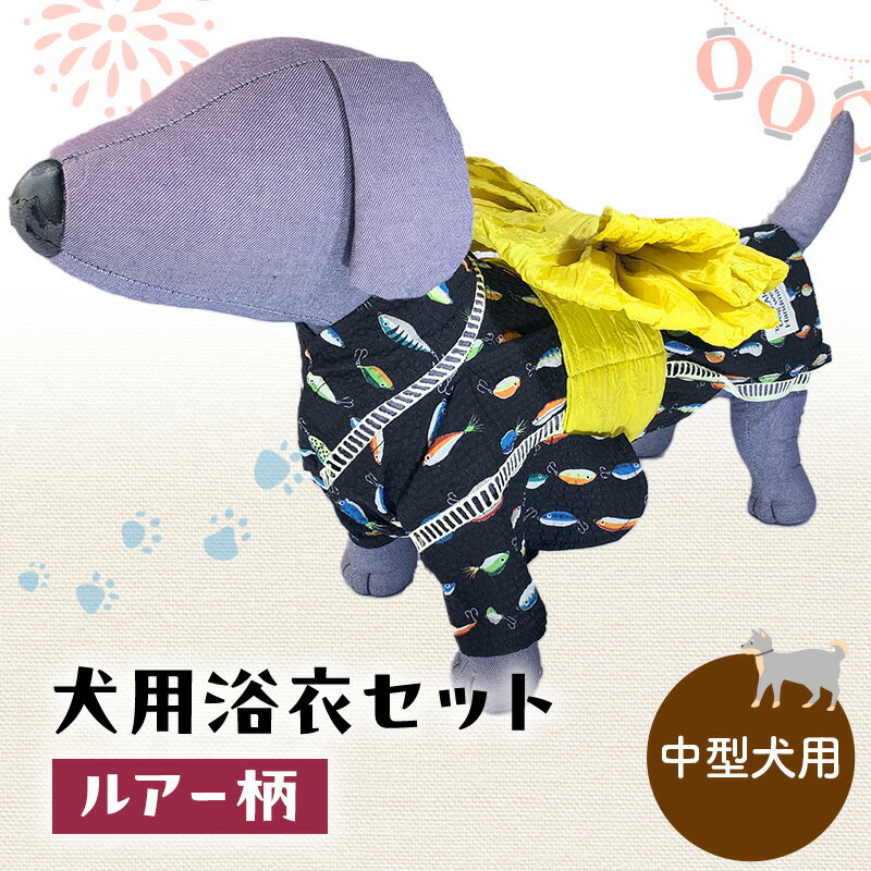 【ふるさと納税】ペット用品 犬用浴衣セット 中型犬 男の子用 ルアー柄 犬の服 浴衣 甚平 綿素材 夏用 ペット ドッグウェア 可愛い おしゃれ お散歩 お出かけ インスタ映え