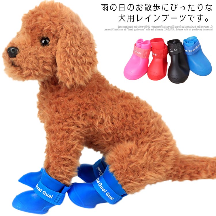 送料無料 4個セット 犬用 レインブーツ ペット 完全防水 犬シューズ 雨靴 ドッグレインシューズ いぬ 長靴 肉球 脚 ケガ 保護 シューズ シリコン素材 柔らかい お散歩 滑り止め 可愛い 中型犬 小型犬 大型犬 犬用靴 軽量 歩きやすい