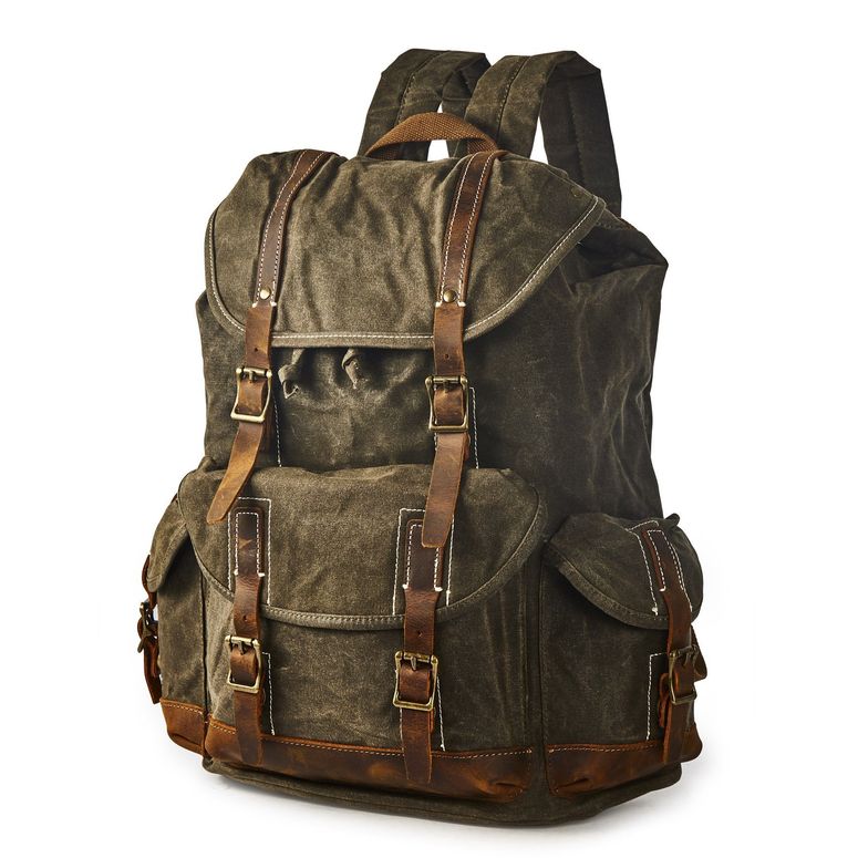 インコ 小鳥 バード トラベルキャリアー BRASS TACKS Leathercraft Heavy Duty Waxed Canvas Vintage Backpack for Men Women Trim Casual 15.6" laptop Travel Rucksack Shoulder Rucksack for Travel 【並行輸入品】