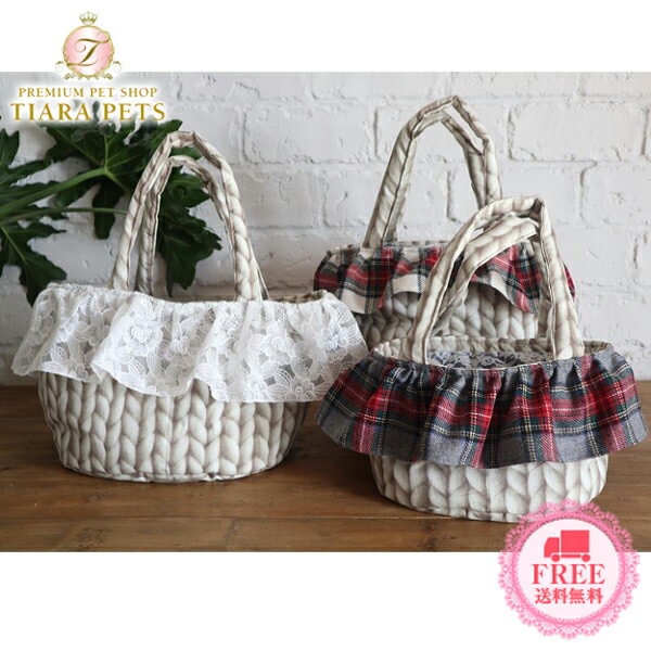 ルル・ドヌフ LouLou29 ざっくりニット かごバッグ(S) ざっくりニットのプリントが可愛いかごバッグ。 フリルは3種のうちよりお選び頂けます。 ホワイトの刺繍レースは優しくとてもナチュラルな印象に。 秋冬定番!タータンチェック柄はカジュアルに♪ ニット×チェックで冬コーデもバッチリ♪ 綿入りの底板がセットで付き わんちゃんも安定してバッグインできます。 自立するためカフェなどでスリングのまま わんちゃんを置くことができて便利♪ 【カラー】 レース、グレーチェック、ホワイトチェック 【素材】 コットン100% 別布 コットン100% 中綿 ポリエステ100% 【耐荷重】 Sサイズ:3kg Mサイズ:5kg 【サイズ】 Sサイズ 縦20×横30cm 幅20cm トート持ち手長さ 58cm BAG口の外周 約90cm Mサイズ およそ 縦25× 横35cm 幅25cm スリング肩紐長さ 95cm BAG口の外周 約100cm ※飛び出し防止フックは1本ついております。 ご注意 ・粗い組織のものや、裏面に凸凹があるルーズな素材のもの、表面に糸が浮き出ているものは ちょっとした不注意から引っ掛けてしまいがちです。 取扱いの際は取扱い絵表示確認の上、十分注意して下さい。 ・製品に使用している装飾類は、使用時に引っ掛けや無理に力を加えますと破損や脱落の恐れがございます。 お取り扱いには十分ご注意下さい。 ・引っ張り癖や噛み癖のある子には事故防止のため使用を控えて下さい。 ・装飾・ビーズ類の取れや破損・生地の破れ等は、お直し出来かねますのでご了承の上お買い 上げ頂きますようお願い致します。 ・万が一この製品を使用している際に起こった事故等の保障は一切おいかねます。 ・お洗濯は手洗いのみとなり、洗濯の頻度によっては型崩れ、綿の偏り等がでてくる可能性がございます。 初めてTIARA PETS オンラインストアをご利用頂きます際は必ずこちらをクリックしてご一読下さい。
