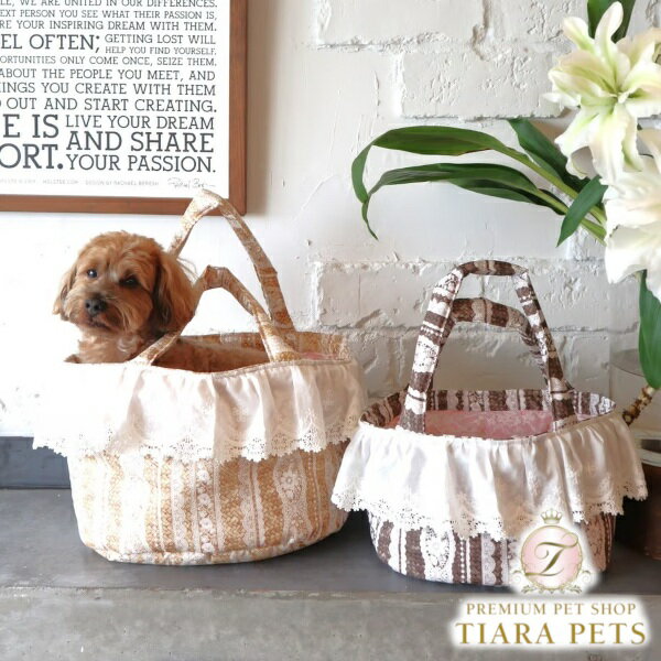 ルル・ドヌフ LouLou29 レーシーバスケット トートBAG 竹編みのバスケット柄地にレースの模様がプリントされ、 コットンレースがフリルになった、おしゃれで可愛いトートBAGです 綿入りの底板がセットで付き わんちゃんも安定してバッグインできます。 自立するためカフェなどでスリングのまま わんちゃんを置くことができて便利♪ 飛び出し防止フックは1本ついております。 【素材】 コットン100% 別布 ポリエステル100% 中綿 ポリエステ100% 【サイズ】 Sサイズ 縦20×横30cm 幅20cm 肩紐長さ 100cm BAG口の外周 約90cm Mサイズ およそ 縦25 × 横35cm 幅25cm 肩紐長さ 95cm BAG口の外周 約100cm 【カラー】 ベージュ、ブラウン 【ご注意】 ・粗い組織のものや、裏面に凸凹があるルーズな素材のもの、表面に糸が浮き出ているものは ちょっとした不注意から引っ掛けてしまいがちです。 取扱いの際は取扱い絵表示確認の上、十分注意して下さい。 ・製品に使用している装飾類は、使用時に引っ掛けや無理に力を加えますと破損や脱落の恐れがございます。 お取り扱いには十分ご注意下さい。 ・引っ張り癖や噛み癖のある子には事故防止のため使用を控えて下さい。 ・装飾・ビーズ類の取れや破損・生地の破れ等は、お直し出来かねますのでご了承の上お買い 上げ頂きますようお願い致します。 ・万が一この製品を使用している際に起こった事故等の保障は一切おいかねます。 ・お洗濯は手洗いのみとなり、洗濯の頻度によっては型崩れ、綿の偏り等がでてくる可能性がございます。 関連商品 ルル・ドヌフ LouLou29 レーシーバスケット スリングバッグ ルル・ドヌフ LouLou29 フローラルデニム ベッドキャリー ルル・ドヌフ LouLou29 レーシーバスケット ベッドキャリー ルル・ドヌフ LouLou29 アンティークフラワー スリング 初めてTIARA PETS オンラインストアをご利用頂きます際は必ずこちらをクリックしてご一読下さい。