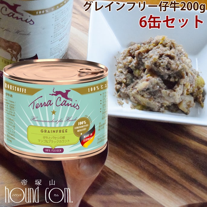 【割引クーポン配布中】テラカニス グレインフリー 仔牛とパセリの根 マンゴ&ブラックカラント 200g 6缶 犬用 缶詰 ウェットフード ドッグフード ドック 無添加 コンプリートフード 手作り食の栄養補助にも