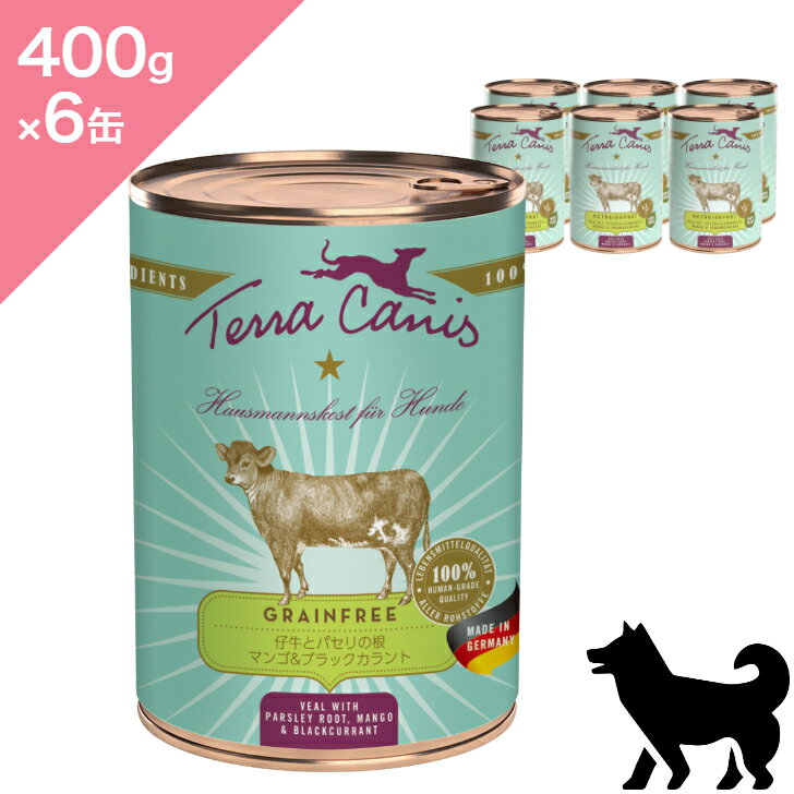 ◆クーポンあり◆ 6缶入ケース【犬用】TerraCanis テラカニス グレインフリー 仔牛肉【400g ×6缶】ウェットフード コンプリート食 仔牛肉 Veal Beef Pumpkin ParsleyRoot Parsnip Mango Wetfood Grain-free Lacto-free 正規品 プレミアムフード ラクトフリー