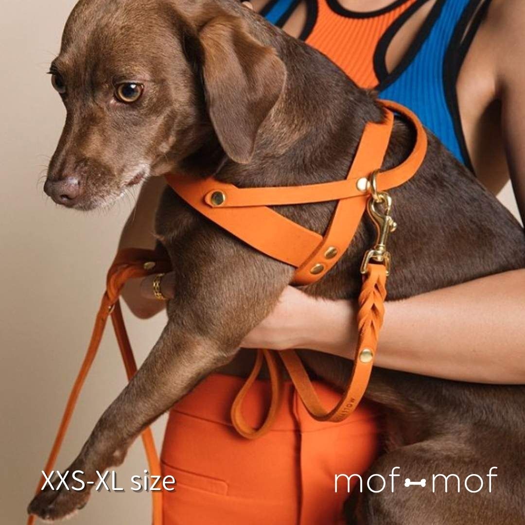 Molly&Stitch レザーハーネス MANGO サイズ交換無料 ハーネス オレンジ インポート 北欧 レザー スタイリッシュ 本革 小型犬 中型犬 大型犬 おしゃれ かわいい 海外ブランド 散歩 ハーネスベルト 正規品 胴輪 ブランド 高級 犬 ワイマラナー モフモフ
