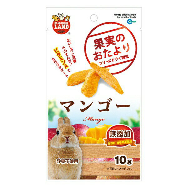 完熟前のマンゴーを細くスライスして食べやすく。ビタミン類や食物繊維がたっぷり。爽やかな甘みと酸味が、後を引く美味しさです。【原材料】マンゴー【保証成分】粗タンパク質2.8%以上、粗脂肪0.9%以上、粗繊維3.5%以下、粗灰分1.4%以下、水分8.4%以下【エネルギー】365kcal【使用方法】袋より少量を取り出してそのまま与えて下さい。【原産国または製造地】タイ【諸注意】主食ではありませんので、与えすぎに注意をして量を加減するようにしてください。【広告文責】ハーマンズ株式会社03-3526-5222【製造販売元】三晃商会【商品区分】小動物フードペットフード(食品)賞味(消費)期限について最新の賞味(消費)期限でのお届けが出来るように、ご注文分を都度メーカーや問屋から最新在庫を取寄せし出荷しています。賞味(消費)期限のお問い合わせや指定はこのような都合上お受け致しかねております。また商品によってはメーカーにより期限の設定が無い場合がございます。
