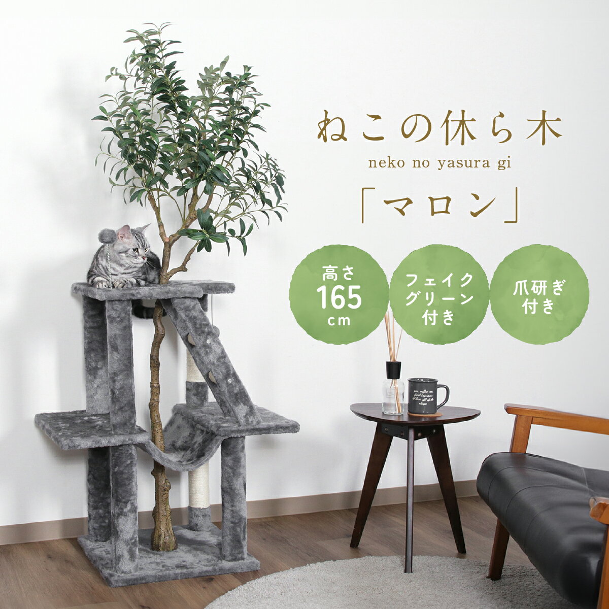 ねこの休ら木 キャットツリー マロン W715 D450 H1650 ねこの休ら木シリーズ キャットツリー ペット家具 据え置きタイプ ローデザイン フェイクグリーン 爪とぎ ハンモック キャットハウス 猫に優しい 幅 71.5cm 奥行45cm 高さ165cm グレー