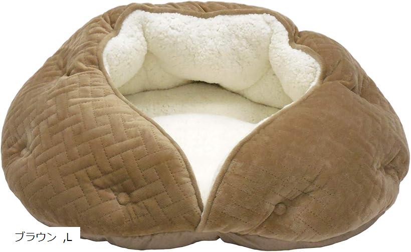 ふわふわ マロン ハウス ペットベッド 犬 猫 冬 冬用 洗える ドーム あったか 暖かい 保温 おしゃれ かわいい ふかふか ボア 小型犬 中型犬 (ブラウン, L)