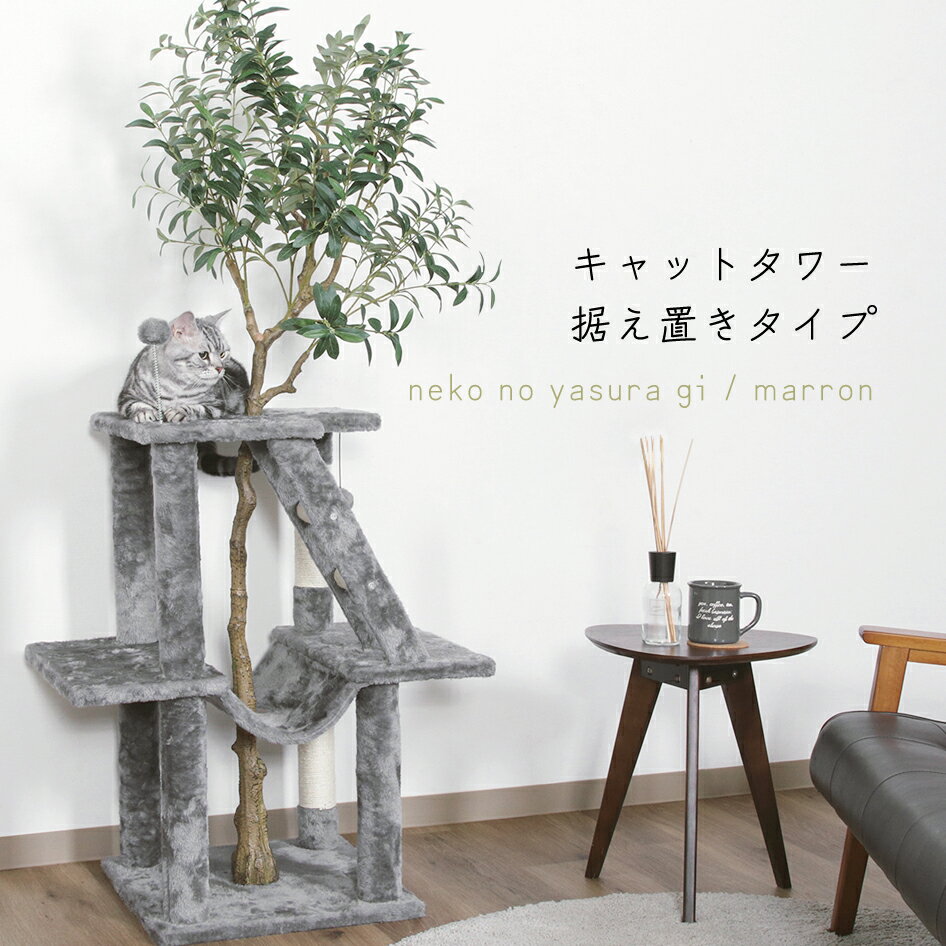 キャットタワー ねこの休ら木 マロン 爪とぎ ( 猫タワー 据え置き 高さ165cm 爪研ぎ ハンモック ロータイプ おしゃれ インテリア 猫 ねこ 猫用品 運動不足 ストレス解消 キャットウォーク ペット用品 )