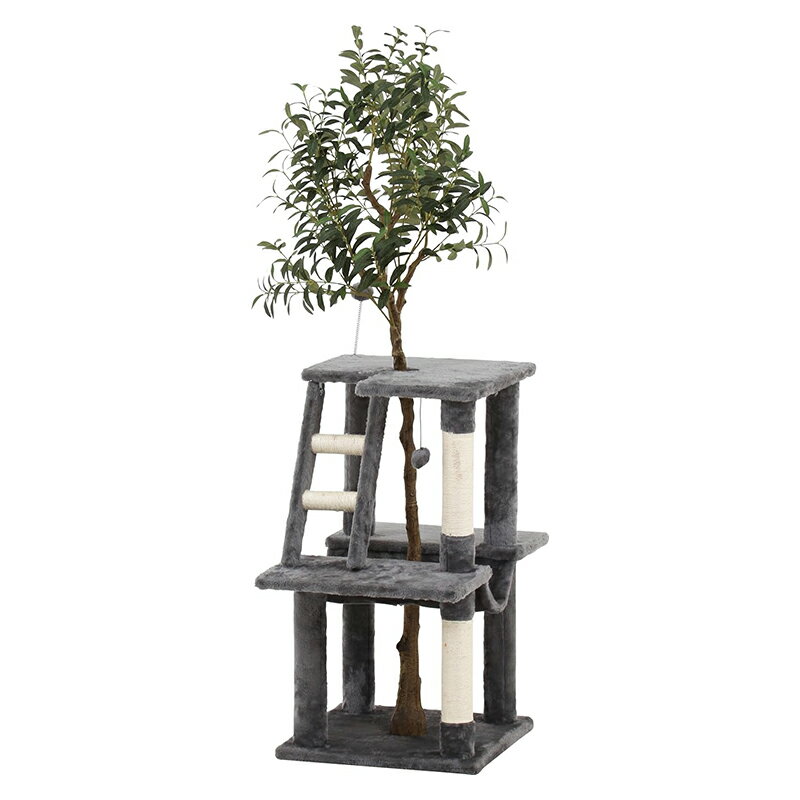 ●ワンルームでも使いやすい、圧迫感を抑えたロータイプのキャットツリー。●汚れの目立ちにくいグレーを基調とした、心休まるカラー。グリーンも映えてインテリアに馴染みます。●全長165cmのオリーブのフェイクグリーンが癒し感アップ。 ●2か所の紐巻き支柱出爪とぎ出来ます。●タワーの昇り降りを助けるステップ付き。●ふわふわハンモックは大きなネコちゃんでもゆったりくつろげます。(ポリエステル100%)■適応体重(ステップ)約8Kg■耐荷重(全体)約24Kg※使用している小物等は演出品です。※こちらはメーカー直送商品です。納品方法:玄関先迄納品日時指定について