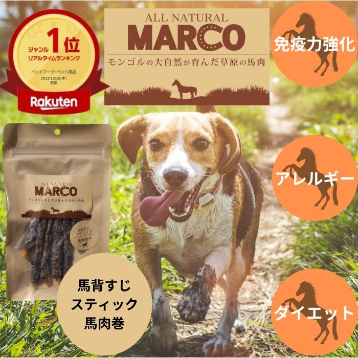 馬肉のおやつMARCO 馬背筋スティック馬肉巻 40gマルコ 無添加 無着色 犬おやつ トリーツ ジャーキー FLF 馬肉 低アレルギー