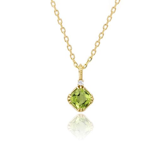 ペリドット和名橄欖石、美しい黄緑色の石。「太陽の石」と言われポジティブな明るい感情を育ててくれると言われています。人間関係を整えて円滑にし、信頼を築く力があるそうです。8月誕生石なのでプレゼントや、お守り代わりにもおすすめ。 綺麗なオリーブグリーンのペリドットネックレスです。ダイヤプリンセスカット入りで色々な角度からの輝きがとても素敵です。ぜひ上品に輝くラグジュアリーなアクセサリーをお楽しみください。シンプルなデザインなので飽きのこないいつでもどのシーンでも使えるペンダントです。 ゴールドのチェーンに、スクエアカットの天然ペリドットを留めました。小さいですが、輝きが綺麗で上品な華やかさがあります。silver925チェーンの長さは約45cmです。華奢なチェーンと輝くペリドットとの相性も抜群です。シンプルで上品なルックスで、普段使いでもちょっとしたお出かけでも、お仕事でもどんな時でも使えるネックレスとなっております。 材質スターリングシルバー、カラー:ゴールド。ニッケルフリーの14Kの膜でコーティングしております。あくまでコーティングの為、ご使用方法や頻度によって剥がれてしまう場合もございます。