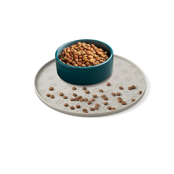 Sociplentycom シリコンマット 犬 食事マット 丸いペットフードマット シリコン製 ペット用食事マット, 給餌マット, 防水 滑り止め, 犬猫用 トイレトレー, 丸洗い可能 (Grey, 28*28)