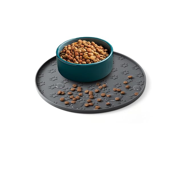 シリコンマット 犬 食事マット 丸いペットフードマット シリコン製 ペット用食事マット, 給餌マット, 防水 滑り止め, 犬猫用 トイレトレー, 丸洗い可能 (Grey, 28*28)