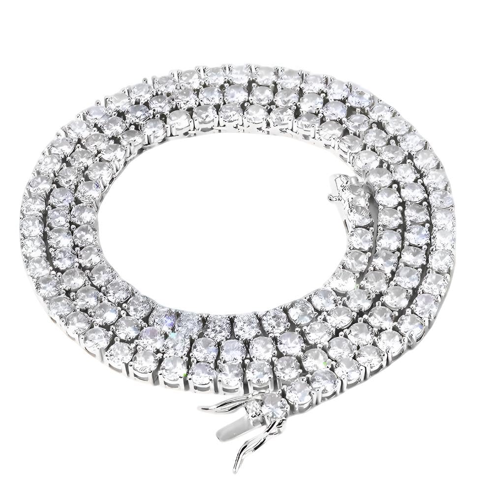 【送料無料】[Rockyu] ネックレス メンズ キュービックジルコニア テニスチェーン 3mmから6mm 幅 ステンレススチール ゴールド シルバー ヒップホップ ジュエリー クリスマス プレゼント 色:4mm-55cm Silver、サイズ:適度な