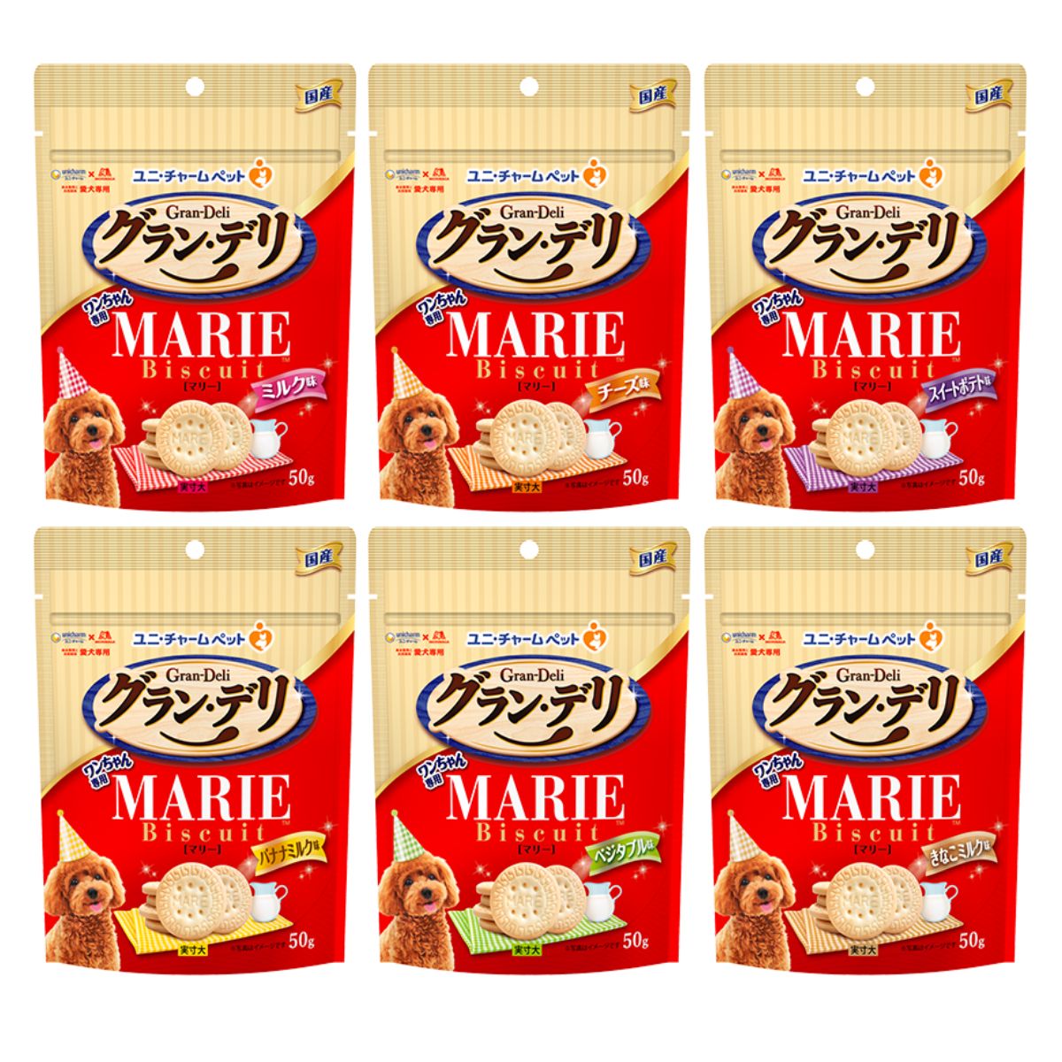 グランデリ 犬 おやつ マリービスケット 50g 全6種 (ミルク チーズ スイートポテト バナナミルク ベジタブル きなこミルク)