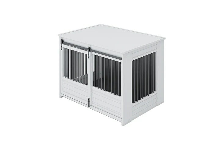 【アメリカNew Age Pet】ニューエイジペット ecoFLEX シリーズ食器付きストレージ インドアダブルダイナーワイドストレージボックス ホワイトXL EHHF304XL【犬小屋 ドッグハウス】