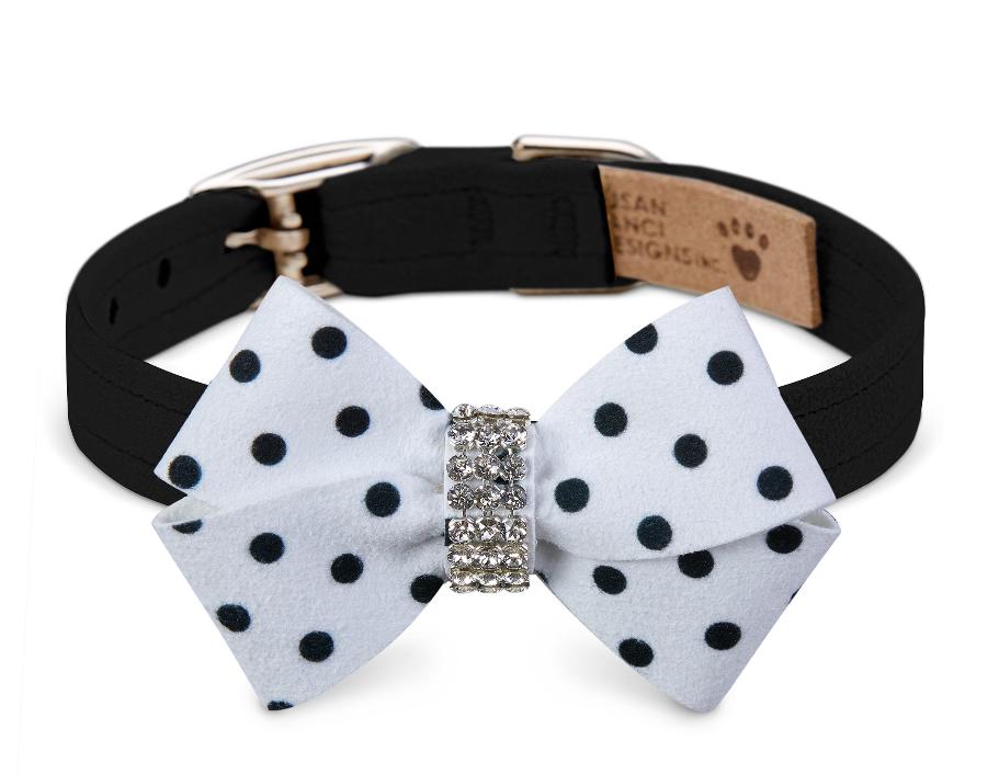 ★Susan Lanci★スーザンランシーBlack and White Polka Dot Nouveau Bow Collar犬用スワロフスキ付き首輪
