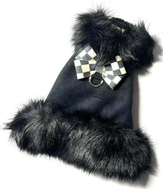 ★Susan Lanci/スーザンランシー★Windsor Check Nouveau Bow Black Fox Fur Coat犬用フェイクファーコート