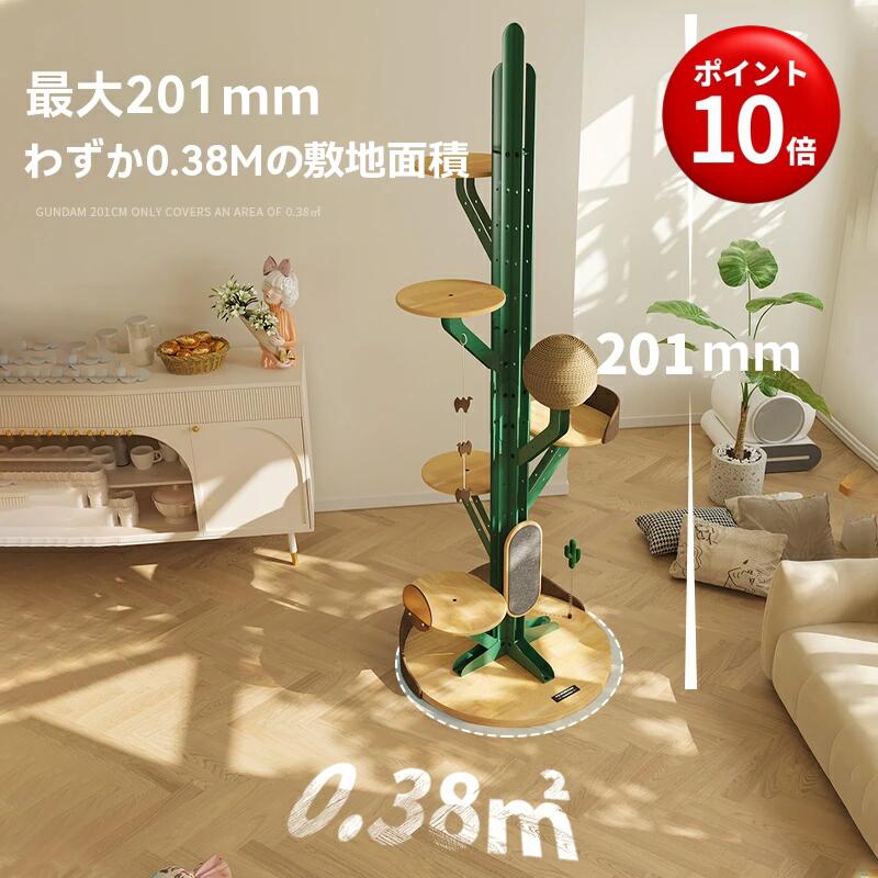 \期間限定P5倍/【最大2000円クーポン配布中!】★P10倍★【無垢材製】省スベースサボテンデザインキャットタワ | 猫ハウス & ツリー一体型ミニマル収纳おしぼり猫用品 | 天然木インテリア対応