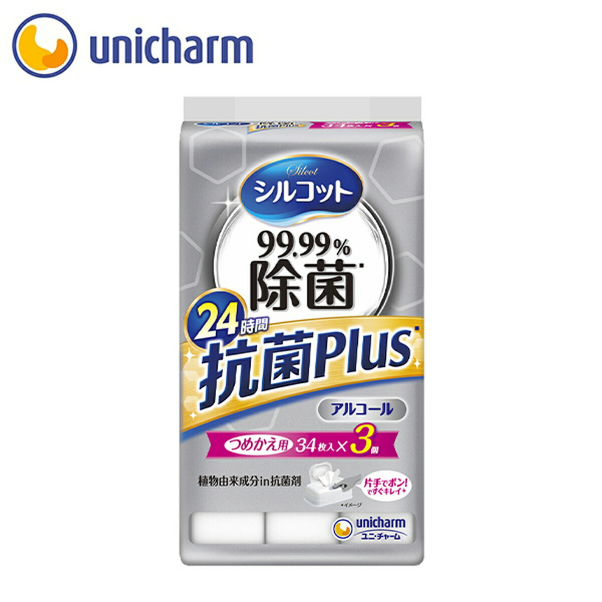 【エントリーでP5倍◆】シルコット 99.99%除菌 抗菌Plus ウェットティッシュ 詰替 34枚×3個 ウェットシート 衛生的 清潔 おしぼり 敏感肌 持ち運び 除菌 敏感肌 大容量 詰め替え 掃除 ウェットシート 衛生的 清潔 おしぼ