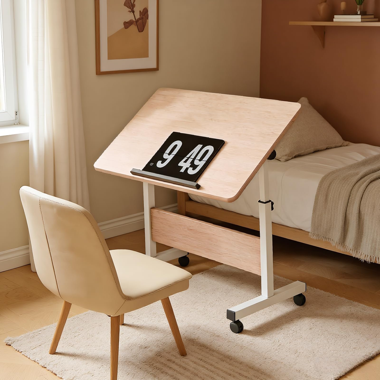 昇降デスク 折りたたみテーブル 高さ調整可能(64-88cm) キャスター付き 省スペース PCデスク/化粧台/作業机 幅60cm×奥行40cm
