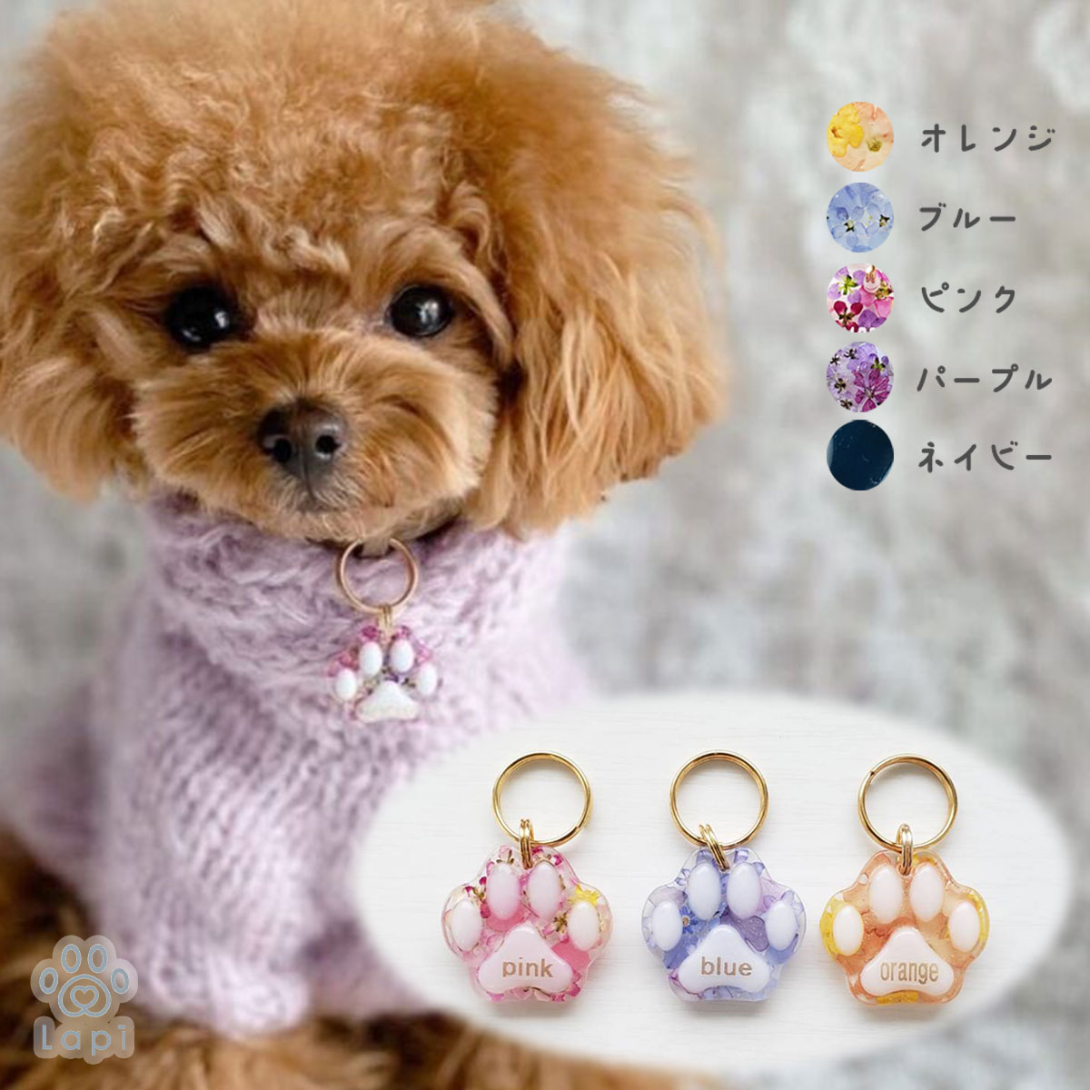 商品情報素材/材質生産/材質:日本/レジンサイズ/寸法size幅約 2.3cm 高さ約 2.1cm 厚み約 0.5cm重さは金具含め約2.5g注意[作品についての注意事項]・押し花作品は本物の花のため、色褪せることがあります。予めご了承ください。・レジン製品ですので、直射日光は避けてご使用ください。(黄ばみや劣化の原因になります)・バンドメイドのため、多少の気泡が入りますことをご理解ください。・一つ一つ手作りのため、全く同じものは出来ません。微妙にバランスやパーツが変わることがございます。ご了承ください。・入荷状況により、金具パーツの種類や色が変更になることがあります、ご了承ください。【肉球ネームタグ】 迷子札 肉球 ネームタグ ネームプレート ドッグタグ ペット 犬 猫 迷子防止 ギフト 軽い 軽量 大型犬 小型犬 名入れ かわいい 写真映え ペット ギフト 肉球の形と花が可愛いすぎる、ワンちゃんネコちゃんのオリジナルネームタグ。軽量で小型犬にも負担になりません。全5色。オプションで電話番号を入れたら迷子札にもなります。 10
