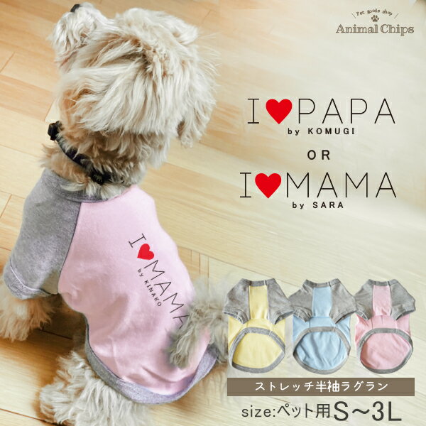 名入れ ペット 服 半袖 ラグラン 父の日 母の日 お名前入り オリジナル 犬 わんちゃん [ アイラブ パパ ママ ] パパ ママ 大好き 母さん 父さん オーダーメイド おそろい お名前入 ワンちゃん おさんぽ 散歩 プレゼント ギフト ペット用品 お出かけ 人気 おしゃれ skr