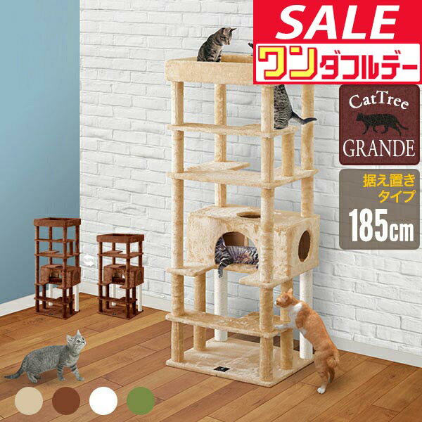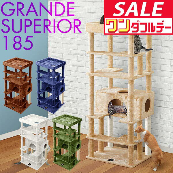 【12/1ワンダフルデー特価】キャットツリー 据え置き 高さ 185cm 幅 70cm 屋根付き 猫タワー シニア 運動不足 猫ちゃん GRANDE SUPERIOR185 組み立て 設置 簡単 爪とぎ ハウス付き スクラッチ 多頭 猫 ね ●[送料無料]
