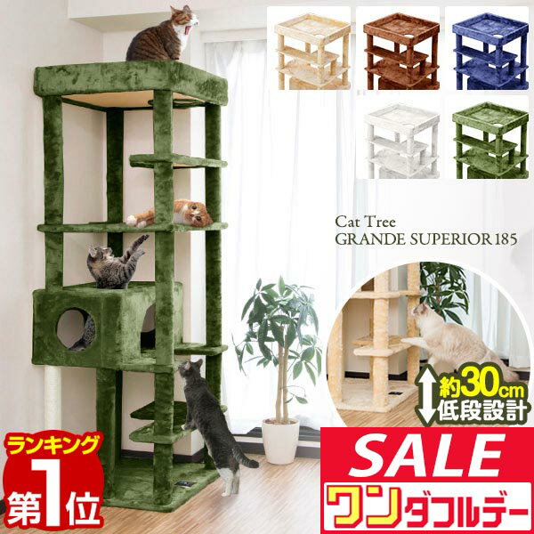 【12/1ワンダフルデー特価】【楽天1位】キャットツリー 据え置き 高さ 185cm 幅 70cm 屋根付き 猫タワー シニア 運動不足 猫ちゃん GRANDE SUPERIOR185 組み立て 設置 簡単 爪とぎ ハウス付き スクラッチ 多頭 猫 ね ■[送料無料]