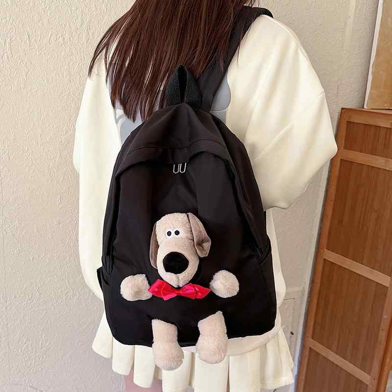 リュック レディース 中学生 高校生 かわいい 犬 大容量 バックパック スクエア ナイロン 通学 旅行 通勤 シンプル ブラック ピンク系