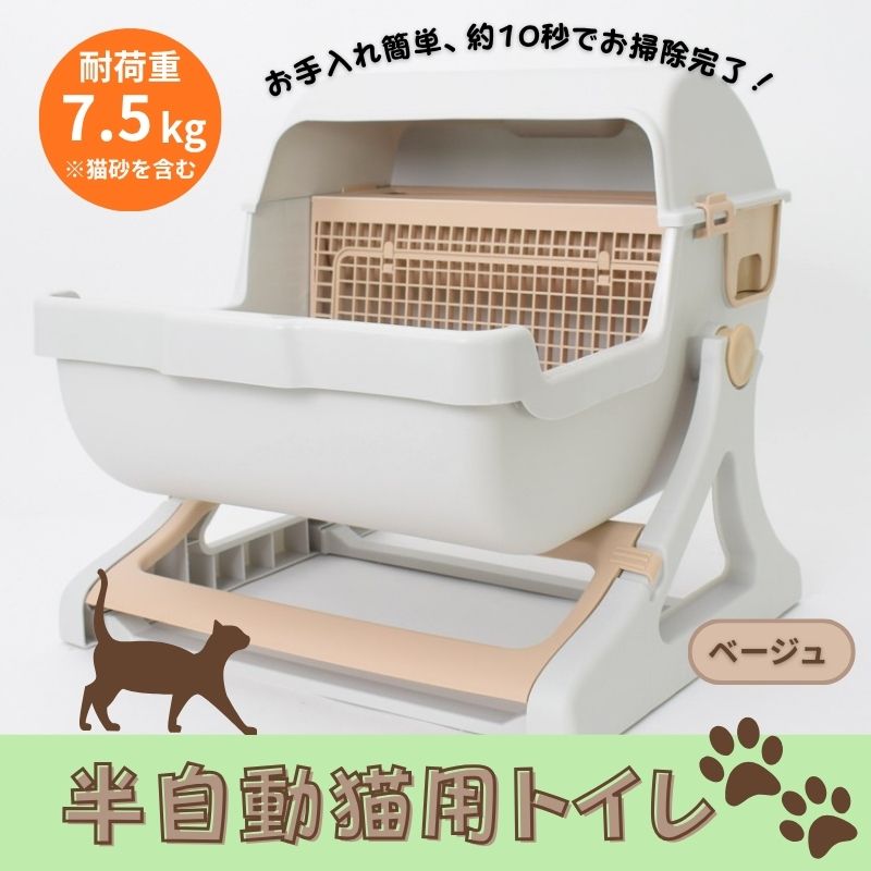 【ふるさと納税】猫用トイレ キャットトイレ 半自動 猫トイレ 回転して処理が出来る 固まる猫砂用 大型 本体 大きめ 隠す 半自動猫トイレ 半自動トイレ 半自動ネコトイレ 猫 トイレ 猫用トイレ 猫用品 おしゃれ SunRuck SR-ACT01 ベージュ