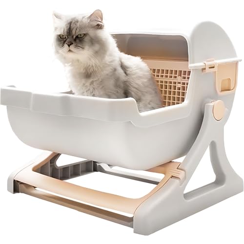 SunRuck 半自動猫用トイレ 猫用トイレ 固まる猫砂用 回転して処理が出来る 猫トイレ 猫用品 おしゃれ SR-ACT01 ベージュ