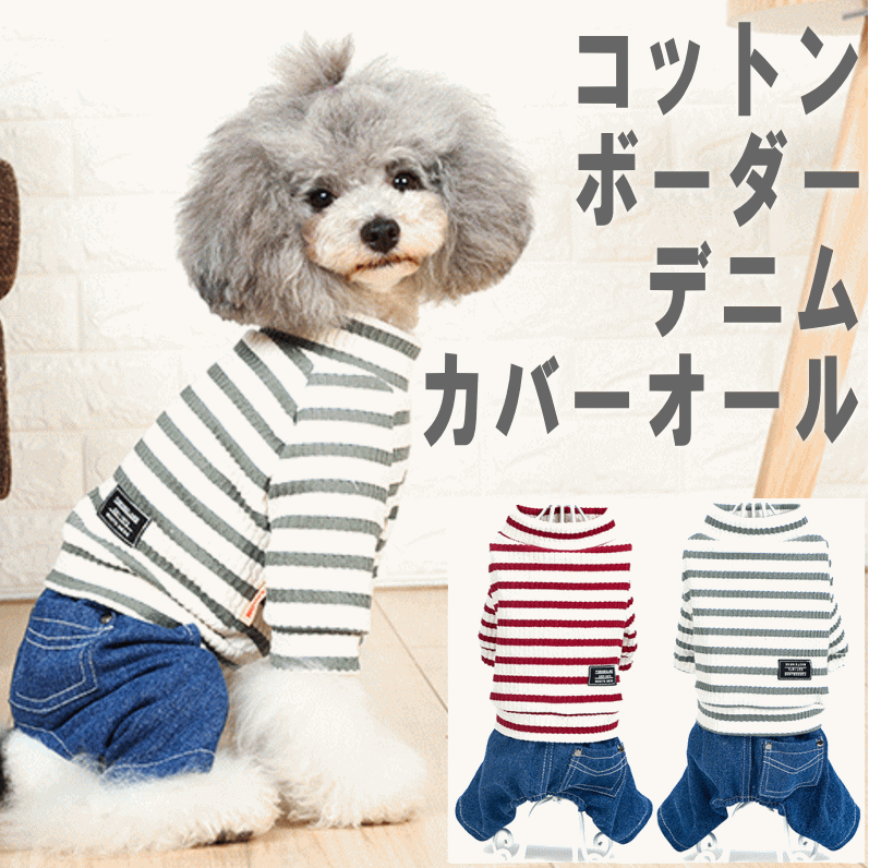 犬服 サロペット カバーオール 小型犬 中型犬 長袖ボーダー 長ズボン おしゃれ かわいい【メール便1枚迄可】 デニム・ボーダーでカジュアルなデザイン 伸縮性ある柔らかなリブニット、足内側とお尻の縁はゴム仕様簡単に着脱できます。ボーダー柄でカジュアルなデザイン、柔らかい素材で、服が苦手な子でも嫌がらず着れそうです。足は長袖、冬用服として、冷え防止や汚れ防止などにおすすめです。●海外製造商品により、多少の糸ホツレ・汚れのある場合がございます。※到着日指定の場合は通販便をご利用ください。●メール便ご利用のお客さまへ●メール便対応枚数は1枚となっております。2枚以上のご注文でメール便利用の場合は再度ご注文をお願い致します。◆素材:綿、その他サイズ・容量 すべて平置きサイズです。サイズ表の実寸法は商品によって1〜2cm程度の誤差がある場合がございますので、予めご了承ください。 2