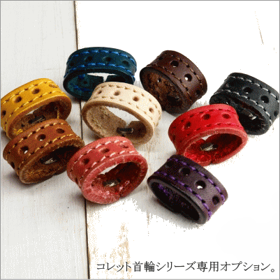 サル革装着見本画像小さくても大きな意味があるんです。 コレット首輪用オプション サル革 価格440円 サル革 商品説明 敢えて大きめサイズの首輪を選んで、剣先の余りを納めながら可愛さをプラス! オプションのサル革を1個追加するだけで、見た目の印象が少し変わりますね。 当店人気のお品です。 首輪のアクセントとして、剣先収納として、1個2役の優れものです チョイ大きめサイズを選んで、「穴あけ追加サービス」+「サル革」が首輪通の選択 カラーバリエーションは、全9色 デニムプレーン用は穴無しタイプになります サル革選びのポイント! ・キュン♪首輪=革色:ナチュラル+穴あり+糸色:ベージュがオススメ ・ナチュラルリメイク=革色:挿し色+穴あり+糸色:ベージと同色:挿し色がオススメ ・ヒッコリーデニム=革色:首輪と同色+穴なし+糸色:首輪と同色がオススメ ・Plane=革色:首輪と同色+穴なし+糸色:首輪と同色がオススメ ・イタリアンリネン=革色:チョコ+穴あり+糸色:専用パステル色がオススメ ・ビエラボーダー=革色:ブラウン+穴あり+糸色:レッドがオススメ ・カスタム及び「サル革達人」仕様は=自由な発想で革と糸をチョイス ★サル革をアクセントで付ける場合は、必ず『チョイ大きめサイズ』で首輪を選んで下さい。 【重要】オプションサル革につきましての注意事項 ・ダブルDカン仕様をご希望の場合、オプションのサル革は特に必要ありません。 ・オプションサル革は穴追加の場合にご検討くださいませ。 なお実際にご使用される穴位置によりましてオプションサル革が不要な場合がございます。 ・サイズ選定のお問い合わせの際穴追加・オプションサル革ご購入をお勧めする場合がございますが、 安全を見てのご提案です。最終的にはお客様のご判断でお願い致します。 ・オプションサル革は首輪本体に固定取り付けではありませんので扱い・紛失に十分ご注意くださいませ。