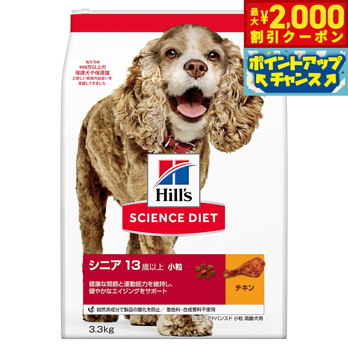 【最大2000円OFFクーポン!&店内ポイント最大52倍!本日限定!】サイエンス ダイエット シニアアドバンスド 小粒 高齢犬用 13歳以上 チキン 3.3kg ヒルズ ドッグフード ドライフード 総合栄養食 着色料 香料不使用