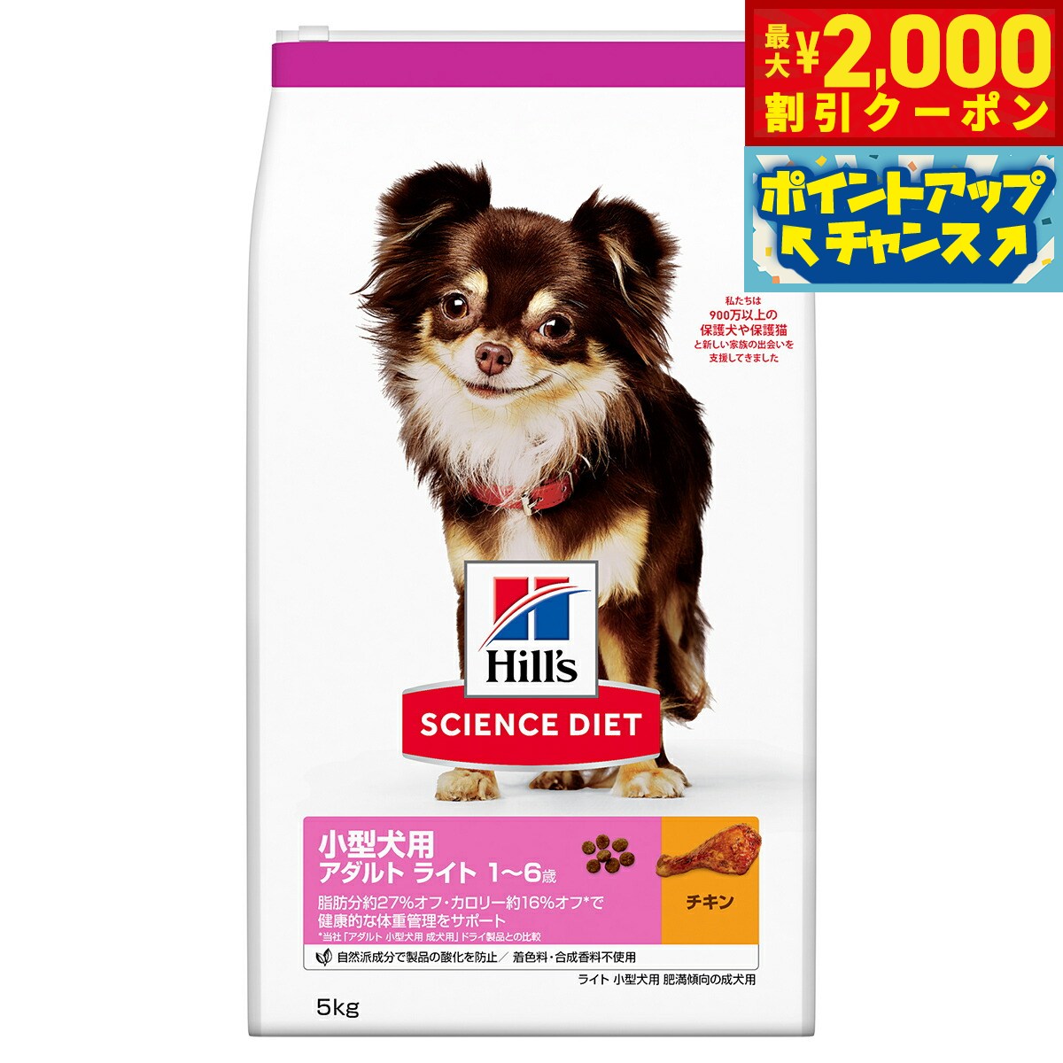 【最大2000円OFFクーポン!&店内ポイント最大52倍!本日限定!】サイエンス ダイエット アダルト ライト 小型犬用 肥満傾向の成犬用 1〜6歳 チキン 5kg ヒルズ ドッグフード ドライフード 総合栄養食 着色料 香料不使用