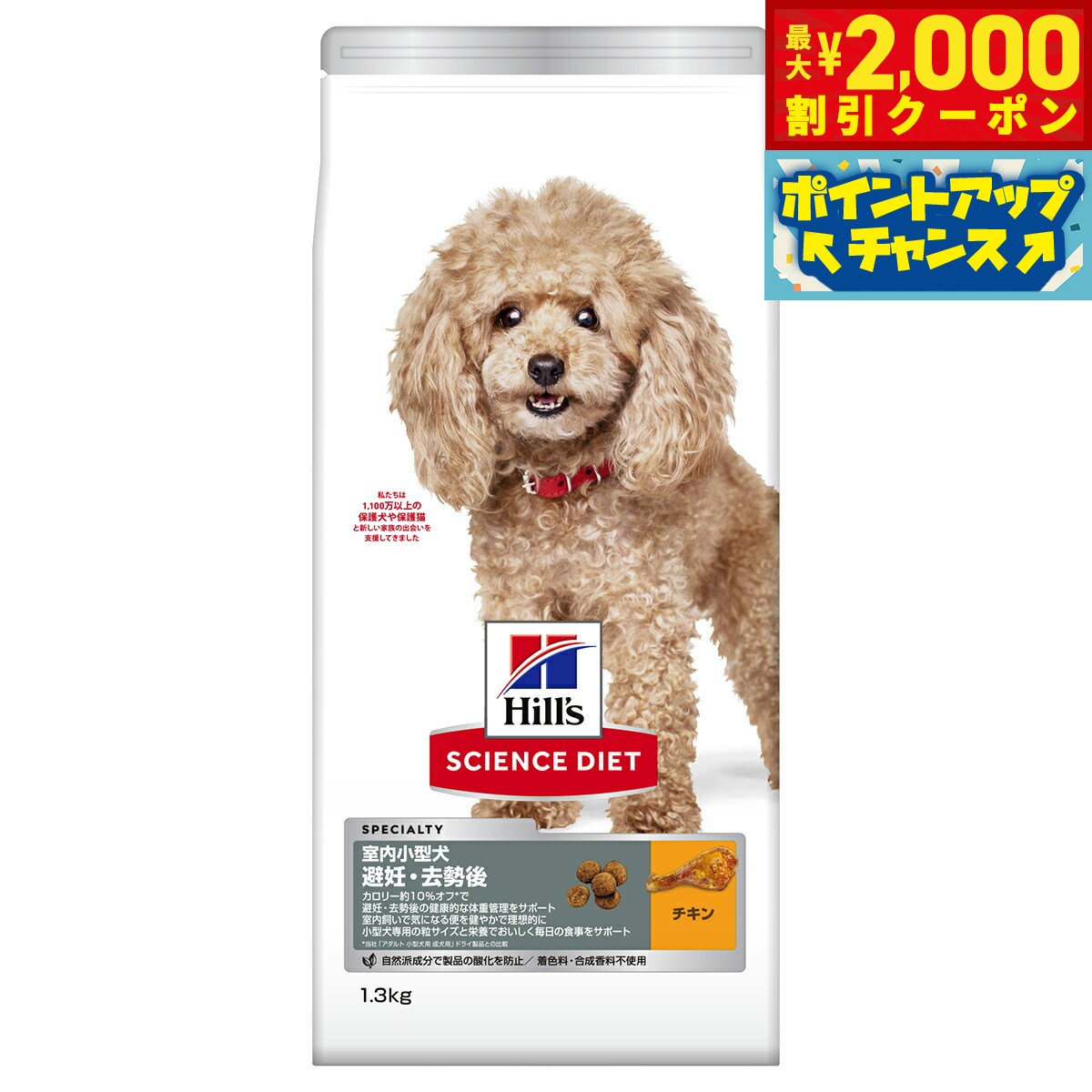 【最大2000円OFFクーポン!&店内ポイント最大52倍!本日限定!】サイエンス ダイエット 室内小型犬用 避妊 去勢後 チキン 1.3kg ヒルズ ドッグフード ドライフード 総合栄養食 着色料 香料不使用