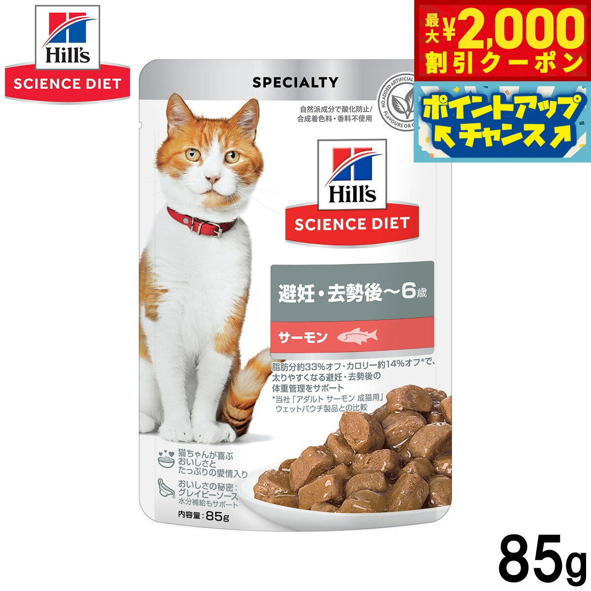 【最大2000円OFFクーポン!&店内ポイント最大52倍!本日限定!】ヒルズ サイエンスダイエット キャットフード 猫用 避妊 去勢後〜6歳 サーモン パウチ 85g