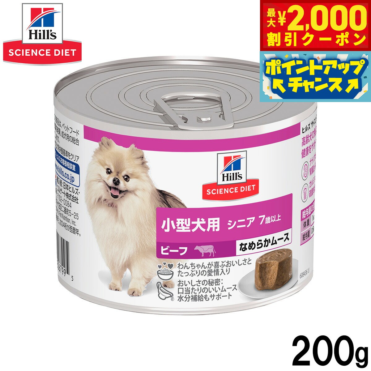 【最大2000円OFFクーポン!&店内ポイント最大52倍!本日限定!】ヒルズ サイエンスダイエット ドッグフード 小型犬用 シニア 7歳以上 ビーフ ムース 200g